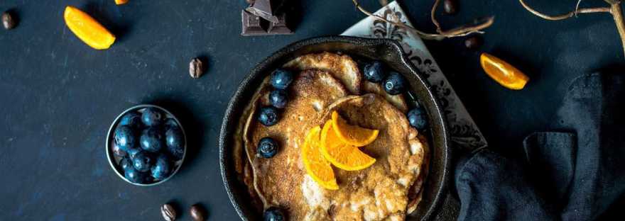 إننا نخرج غالبًا من الباب في أثناء الأسبوع حاملين القهوة في إحدى يدينا وشريحة من الخبز المحمَّص في اليد الأخرى، ولكن في عطلات نهاية الأسبوع، لا يتم الاستعجال في الإفطار أبدًا. إنه أمر متأخر، ويمتد أحيانًا إلى الغداء، ويتضمن الكثير من القراءة والأحاديث بين أقفاص الفواكه والبيض المسلوق والعسل والخبز المحمَّص. تتمثَّل أحد الأشياء المفضلة لدينا التي نحب تقديمها عند زيارة الأصدقاء في فطائر الحنطة السوداء والتوت.
